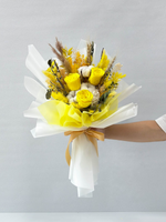 Many of you commonly ask us, "How do we keep our bouquets fresh ah? I need them for an event." All fresh bouquets will be delivered to you "Aqua wrapped" (with plastic) to keep them happy and hydrated. Dried preserved bouquets don’t have. If you're using the bouquet for an event, place it in an air-conditioned room and give it a gentle misting. Don't forget to remove the plastic and pat the stems dry to avoid a watery mess.