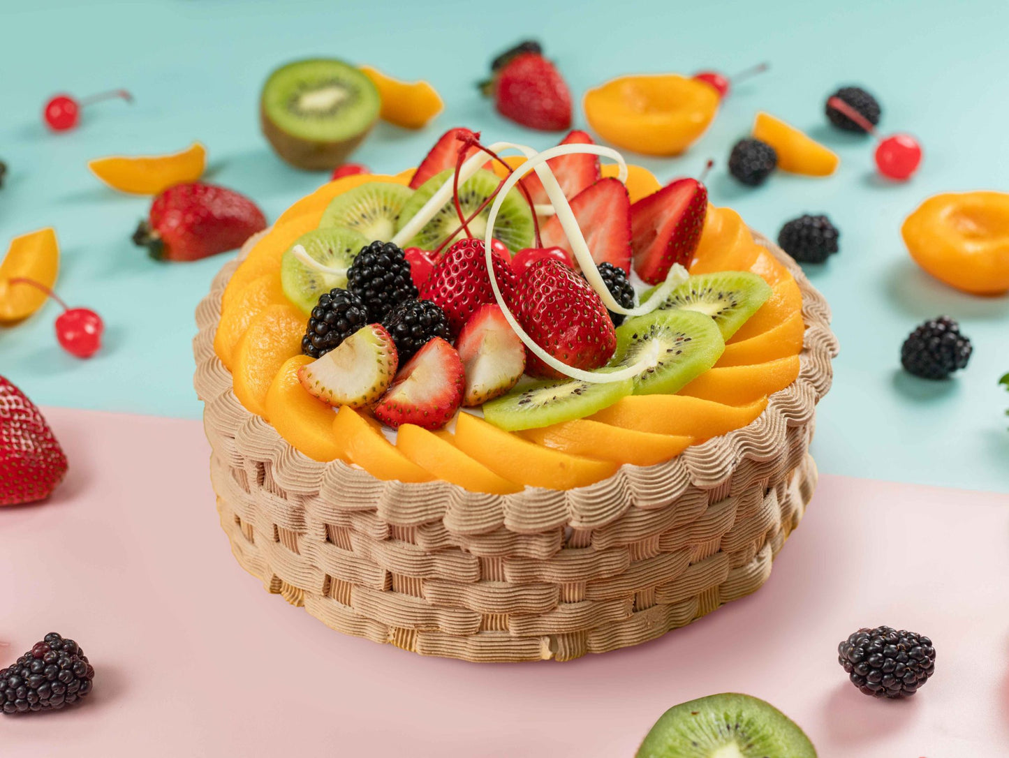This luscious Fruit Cake, a masterpiece from Singapore Florist, is a feast for both the eyes and the palate! Inspired by the vibrant and diverse Funan mall in Singapore, a hub of creativity and innovation, this cake is a celebration of fresh flavors and artistic design. It features a medley of fresh fruits like strawberries, kiwis, peaches, cherries, and blackberries, all artfully arranged atop a round cake. Encircled by a delicate cream, it resembles a charming fruit basket. The perfect harmony of fruity sweetness and creamy richness makes this cake an ideal centerpiece for your upcoming celebrations. Place your order with Singapore Florist today and savor a taste of paradise!