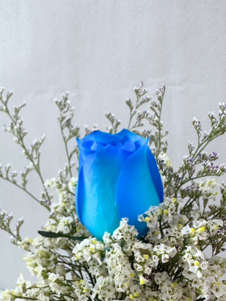 This single blue rose is striking and unique, for those who stand out. Small but powerful, it’s a thoughtful, unforgettable gesture.