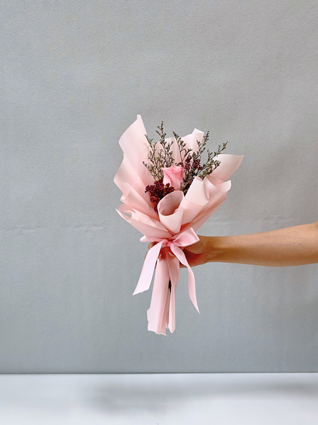 Many of you commonly ask us, "How do we keep our bouquets fresh ah? I need them for an event." All fresh bouquets will be delivered to you "Aqua wrapped" (with plastic) to keep them happy and hydrated. Dried preserved bouquets don’t have. If you're using the bouquet for an event, place it in an air-conditioned room and give it a gentle misting. Don't forget to remove the plastic and pat the stems dry to avoid a watery mess.