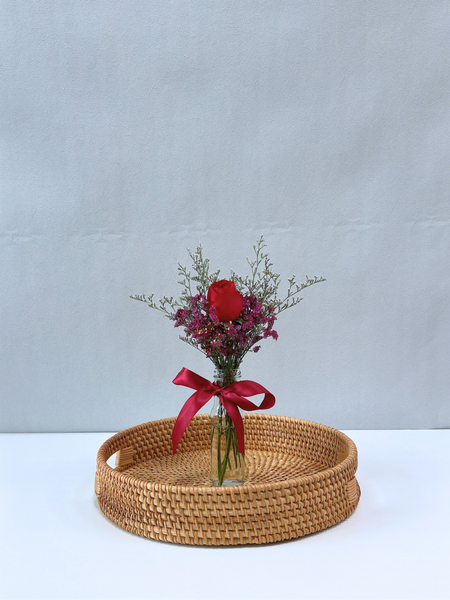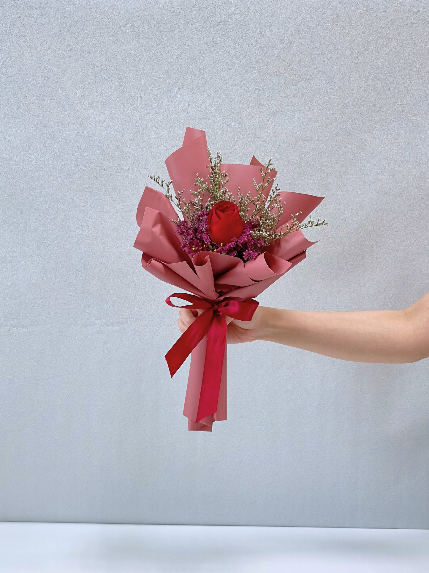 One red rose, small but sibeh powerful. A single stalk that’s perfect for showing heartfelt appreciation, full of simple elegance and grace.