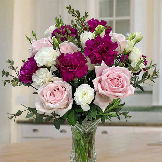 10 Champagne Roses & Hot Pink Mini Roses Bouquet