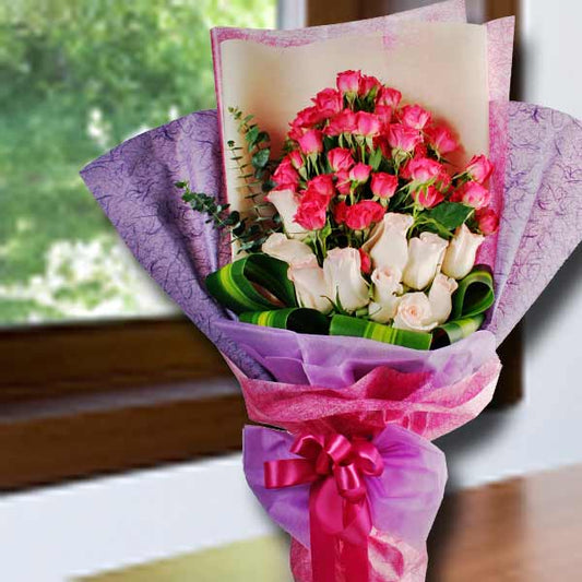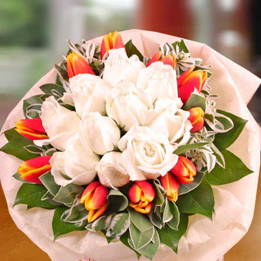 10 Purple Tulips & 10 Red Roses Hand Bouquet