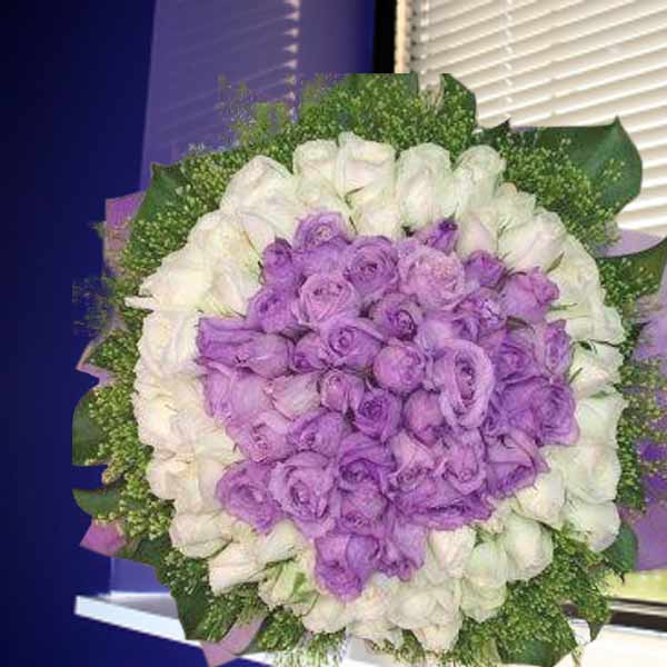 99 Roses ( 40 Purple 59 White ) Handbouquet, Kindly order 3 Days in advance.