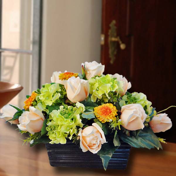 Artificial Champagne Roses with Green Hydrangeas Table Arrangement