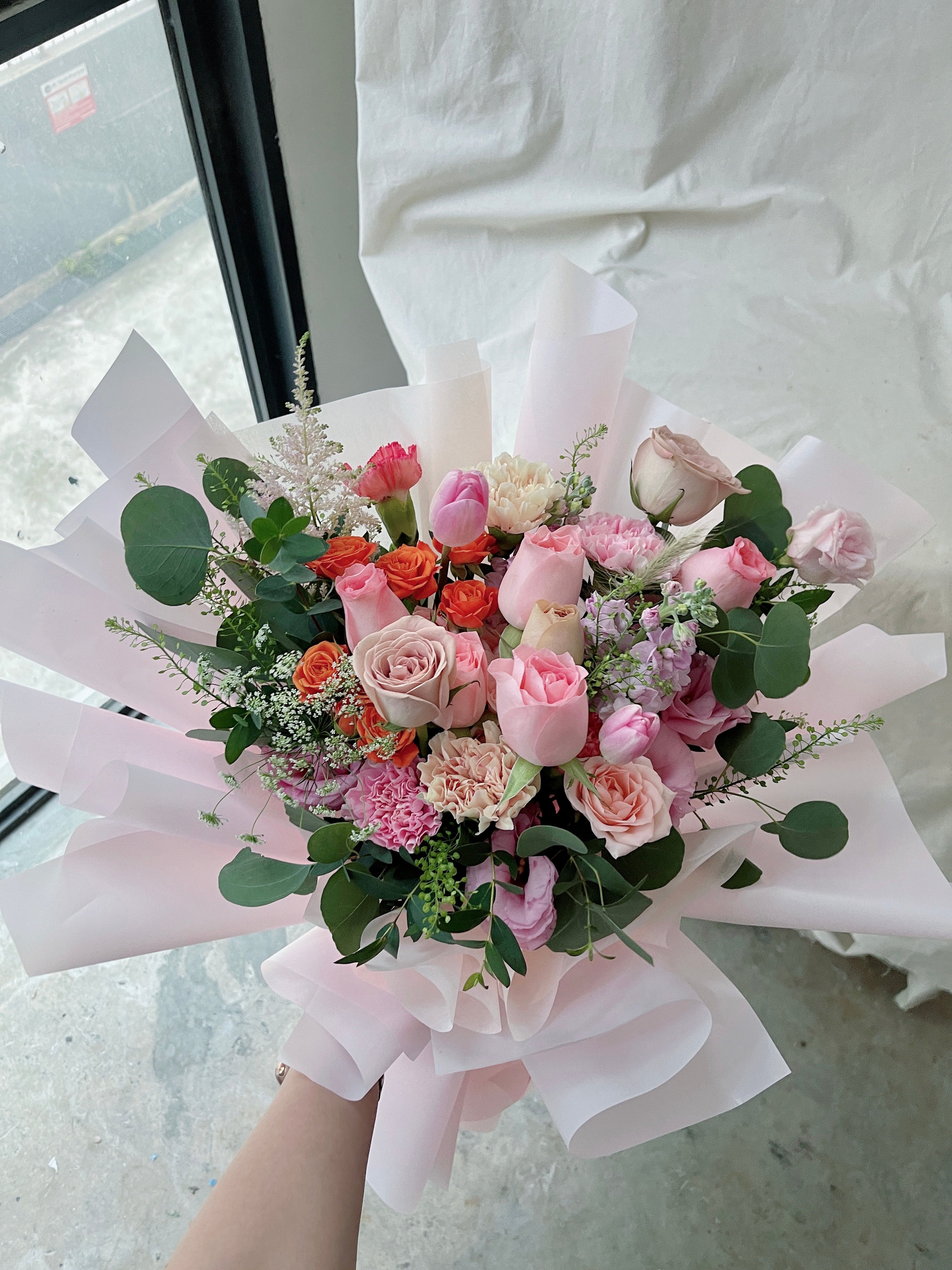 Ngl, photos are taken with our iPhones and by 2 clueless but adorable “interns”. As much as possible, we try our best to just edit only the ugly fine lines and wrinkles on the background of the photos. Lightings and exposures have also been adjusted. So, the colours in our photos might look slightly different from the actual bouquets. But hey, we promise to constantly improve ourselves to serve you better.