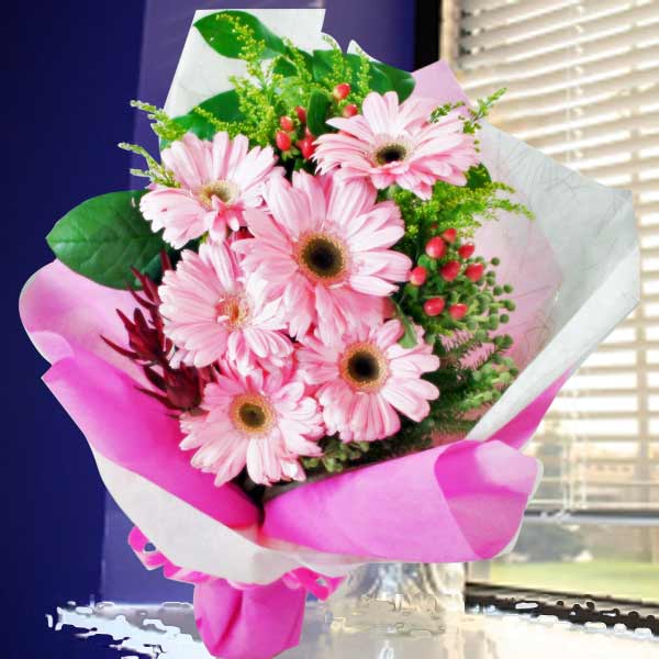 6 Pink Gerberas Handbouquet With Long Wrapping