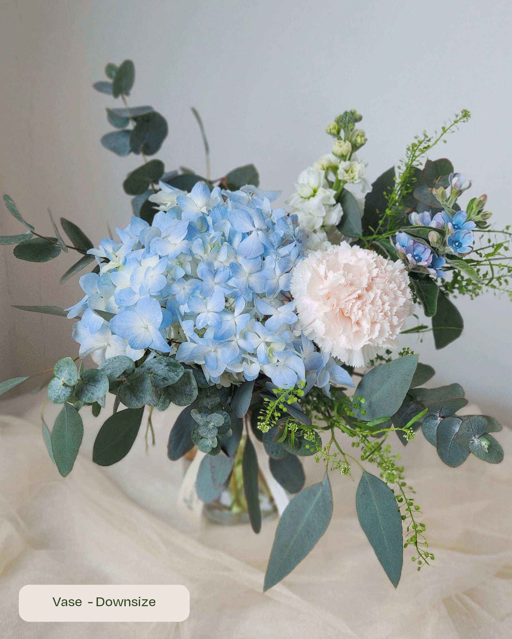 Inspired by the DNA-like design of the Helix Bridge and the calming hues of blue hydrangeas, this bouquet symbolises peace, trust, and steady connections. A perfect gift for those who offer stability and serenity in your life—whether friends, family, or loved ones.