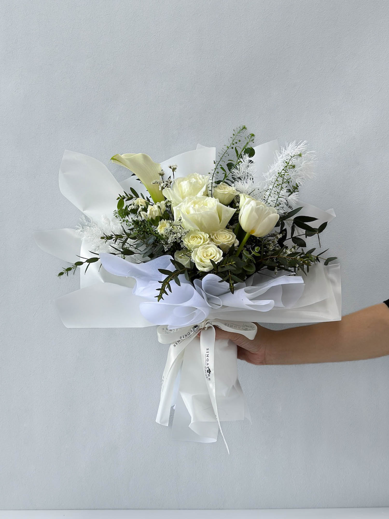 Many of you commonly ask us, "How do we keep our bouquets fresh ah? I need them for an event." All fresh bouquets will be delivered to you "Aqua wrapped" (with plastic) to keep them happy and hydrated. Dried preserved bouquets don’t have. If you're using the bouquet for an event, place it in an air-conditioned room and give it a gentle misting. Don't forget to remove the plastic and pat the stems dry to avoid a watery mess.