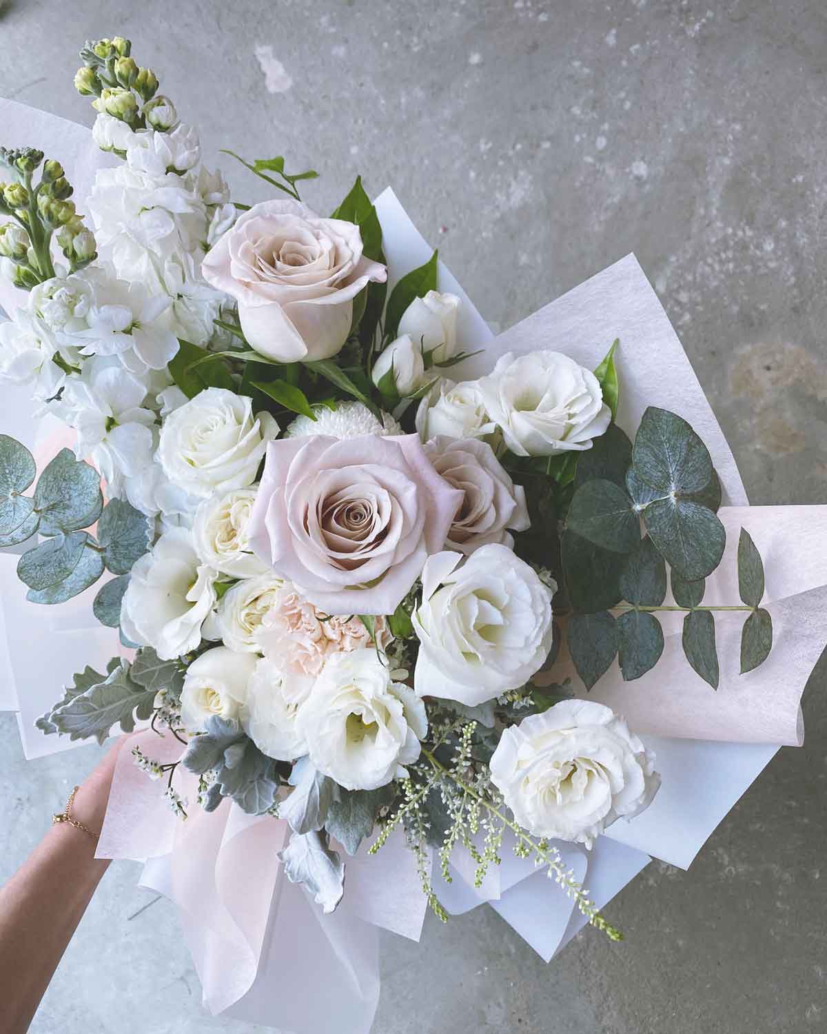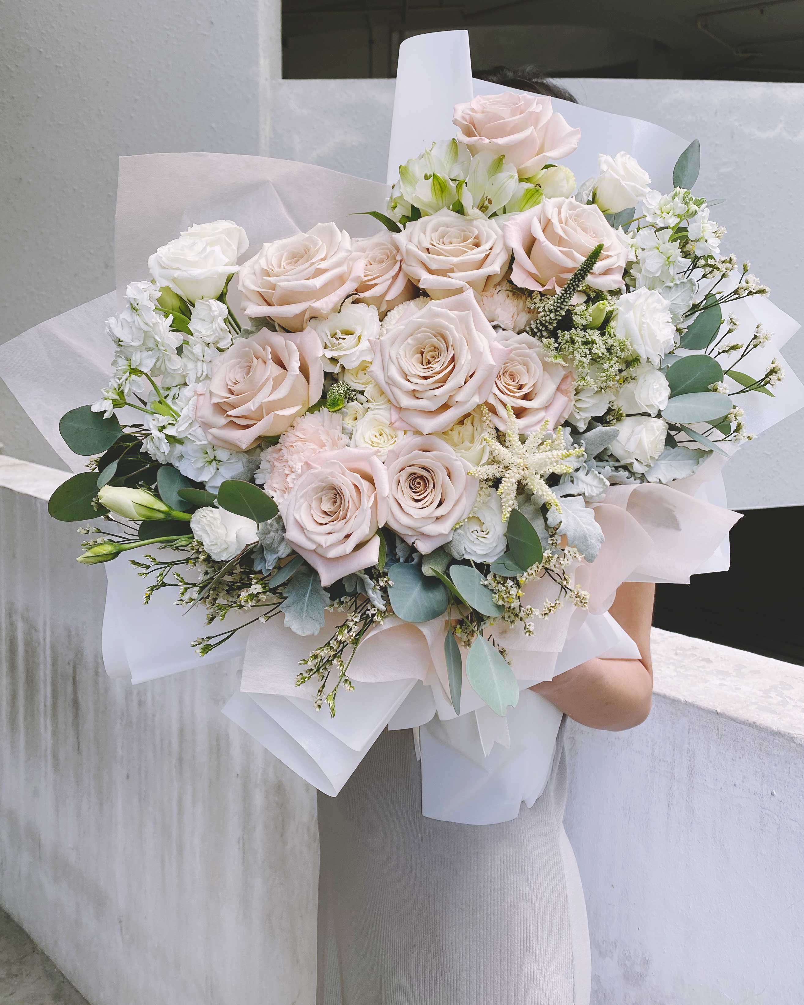 For those who exude elegance with a touch of chic allure of the moon, our Luna Istana bouquet delivers a cool, refined beauty. With menta roses at its heart, this bouquet brings an ethereal, frosted charm, perfect for someone who shines with grace and poise. A bouquet that says, “Oooh, Chic and classy!”