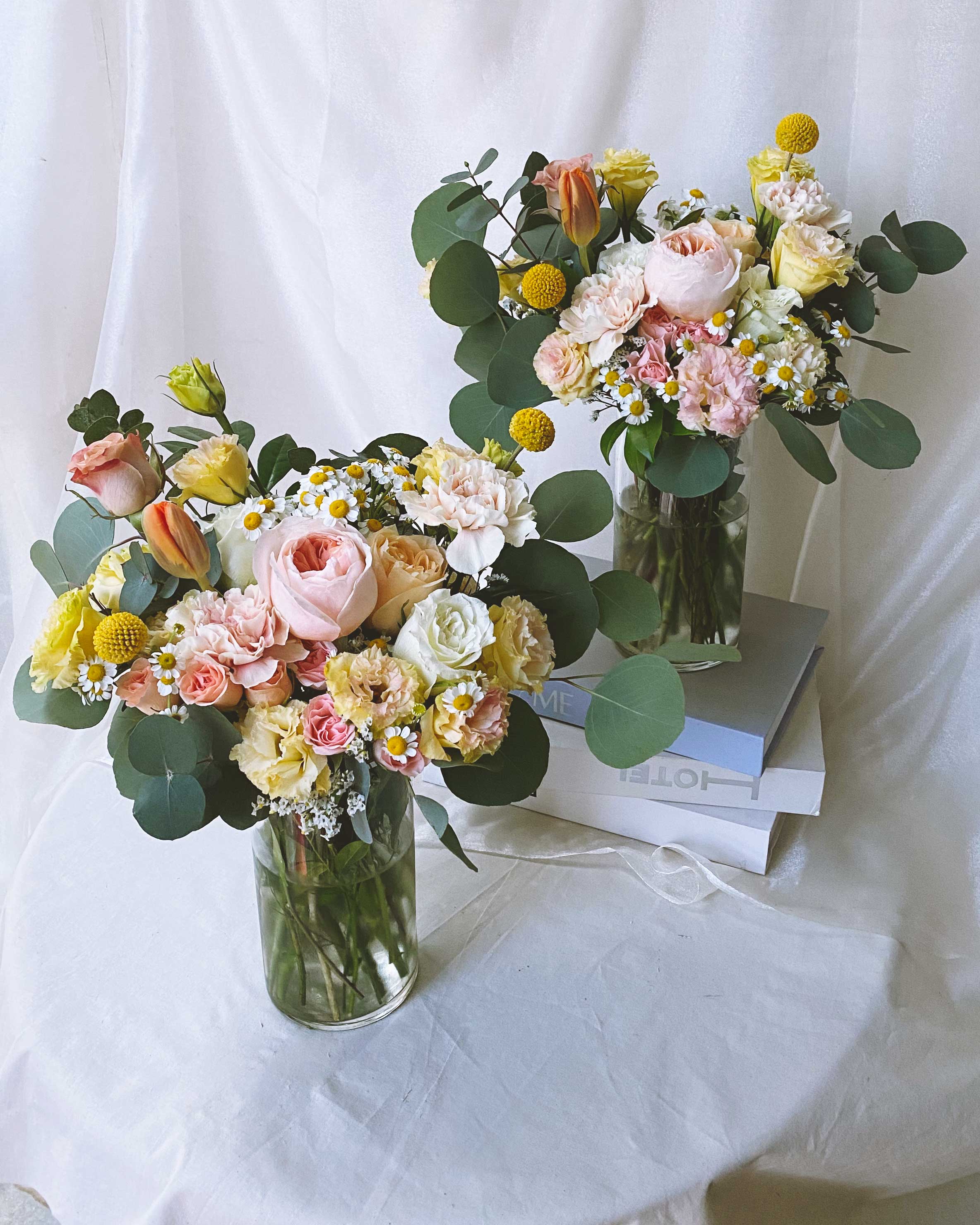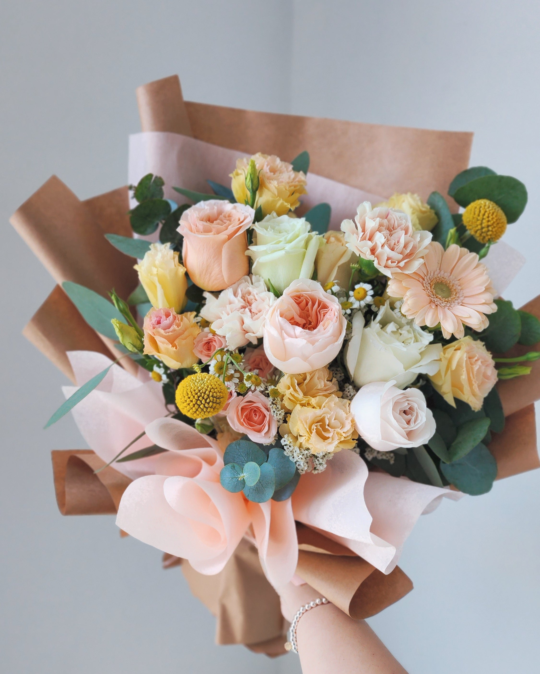 Ngl, photos are taken with our iPhones and by 2 clueless but adorable “interns”. As much as possible, we try our best to just edit only the ugly fine lines and wrinkles on the background of the photos. Lightings and exposures have also been adjusted. So, the colours in our photos might look slightly different from the actual bouquets. But hey, we promise to constantly improve ourselves to serve you better.