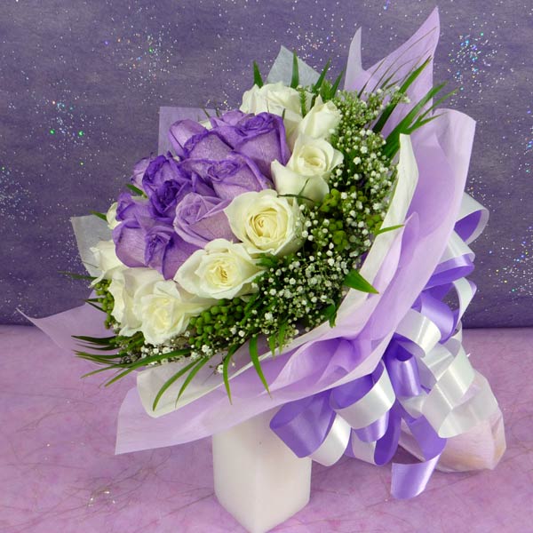 24 Roses ( 12purple 12white ) Hand bouquet