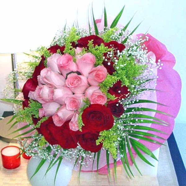 36 Roses ( 18 Peach 18 Red ) Handbouquet