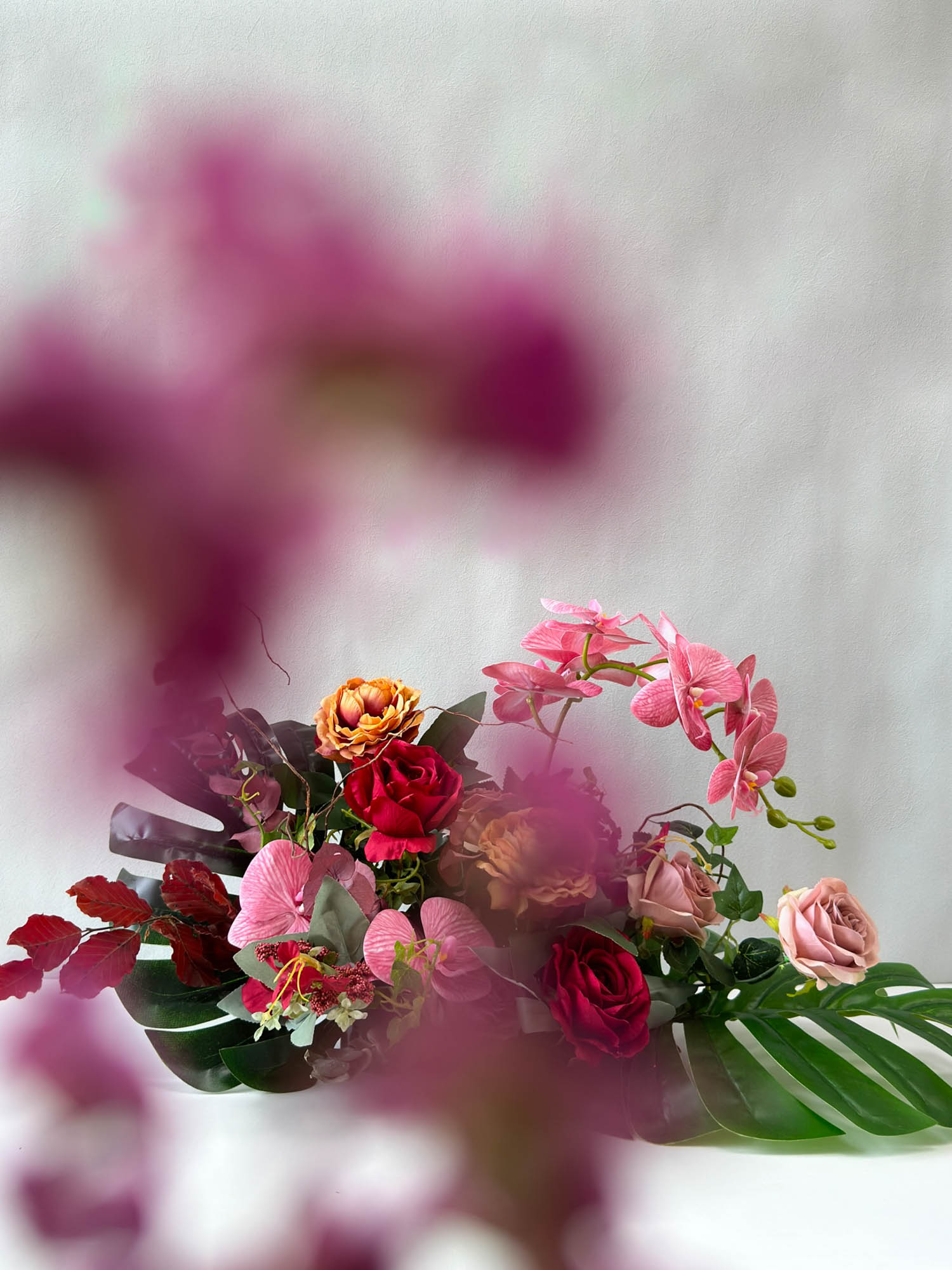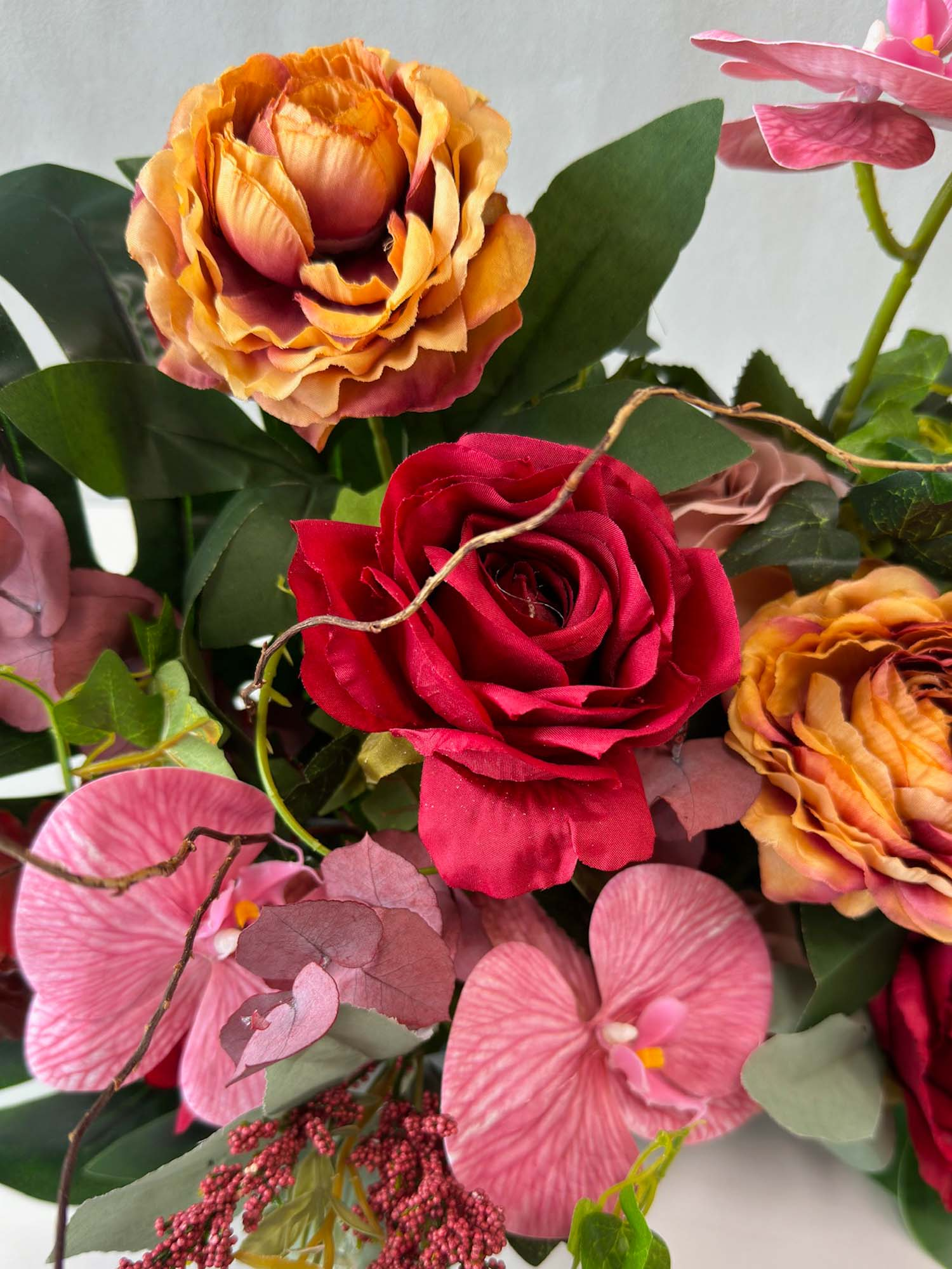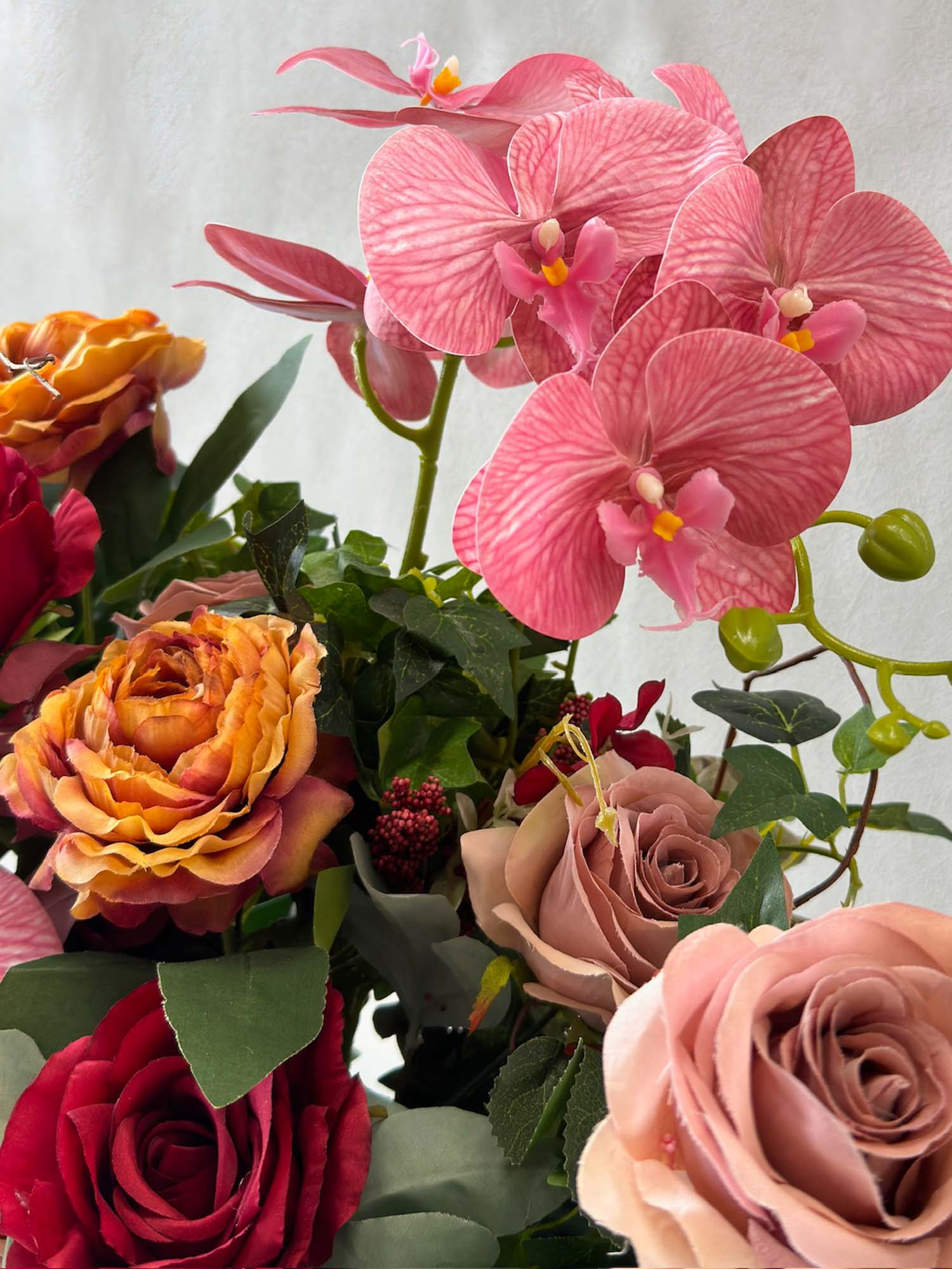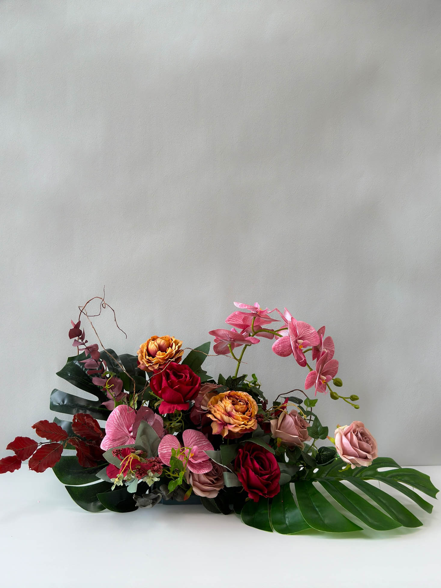 Escape to a tropical paradise with our "Orchid Isle Paradise" artificial table centrepiece. This luxurious arrangement bursts with vibrant colours and exotic blooms, featuring a captivating blend of artificial orchids and roses. Enjoy the luxurious beauty of this centrepiece without the worry of wilting or fading. "Orchid Isle Paradise" is perfect for adding a touch of tropical elegance to any space, whether it's your dining table, living room, or even your office.