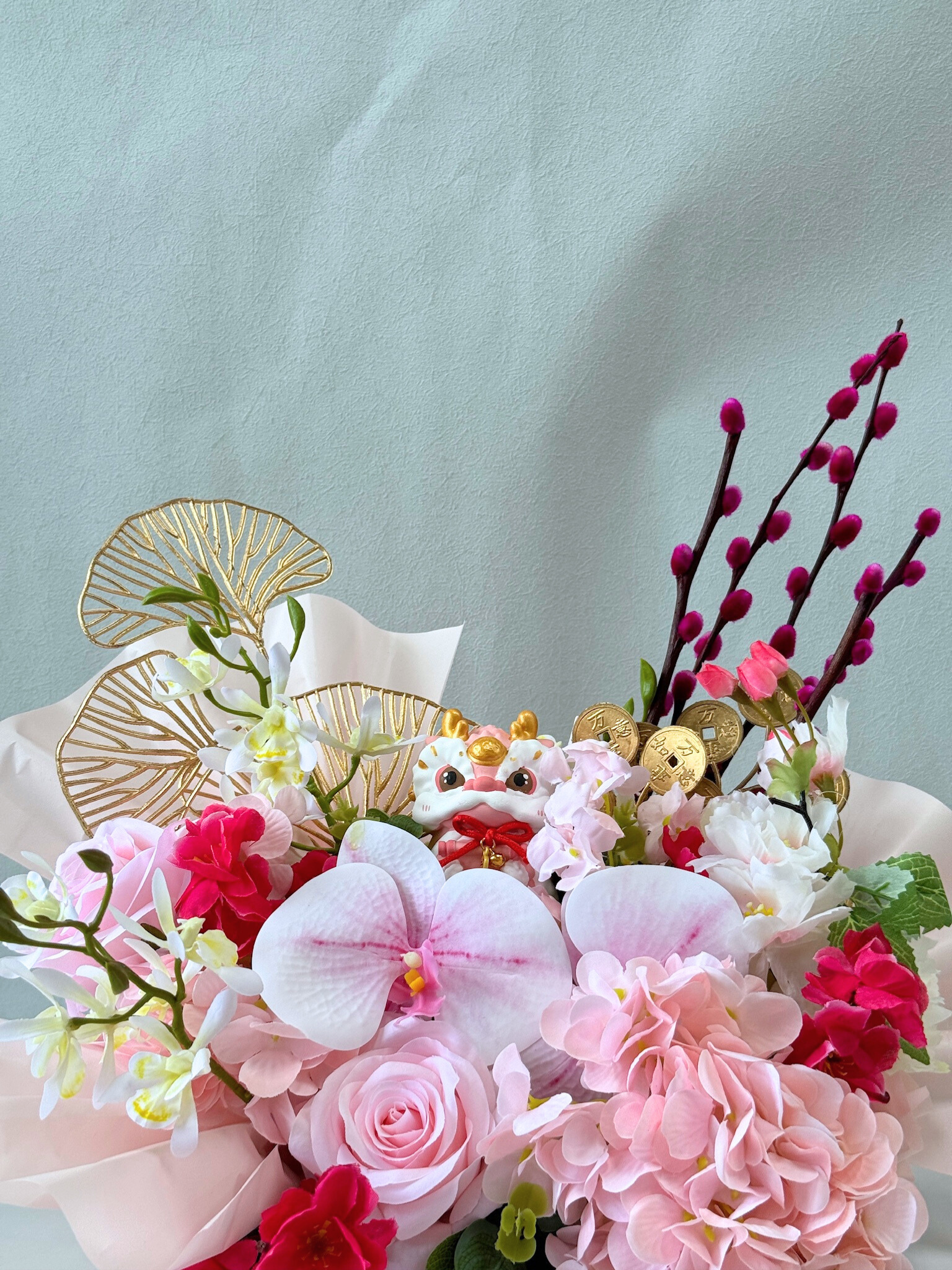 Ngl, photos are taken with our iPhones and by 2 clueless but adorable “interns”. As much as possible, we try our best to just edit only the ugly fine lines and wrinkles on the background of the photos. Lightings and exposures have also been adjusted. So, the colours in our photos might look slightly different from the actual bouquets. But hey, we promise to constantly improve ourselves to serve you better.