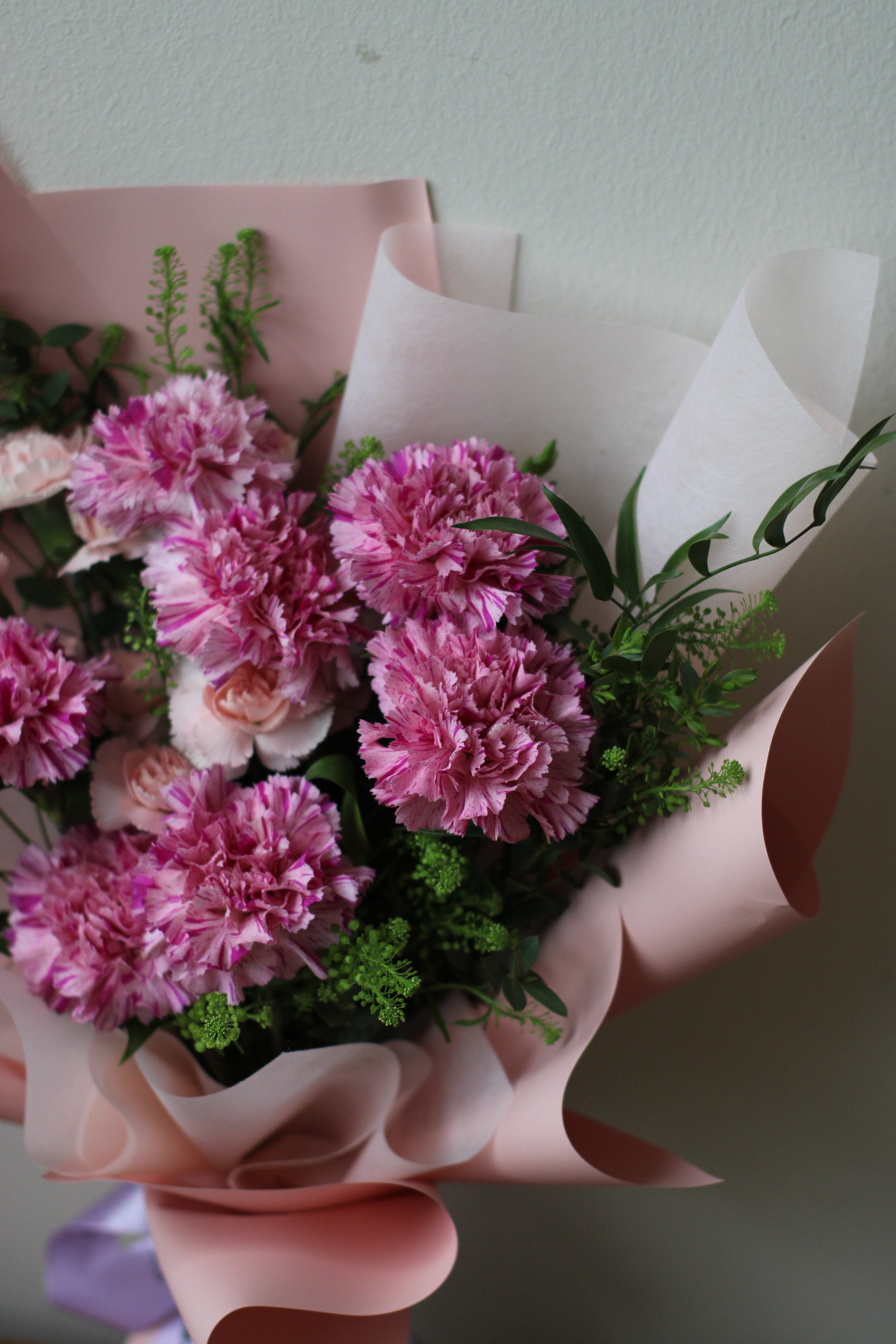 Ngl, photos are taken with our iPhones and by 2 clueless but adorable “interns”. As much as possible, we try our best to just edit only the ugly fine lines and wrinkles on the background of the photos. Lightings and exposures have also been adjusted. So, the colours in our photos might look slightly different from the actual bouquets. But hey, we promise to constantly improve ourselves to serve you better.