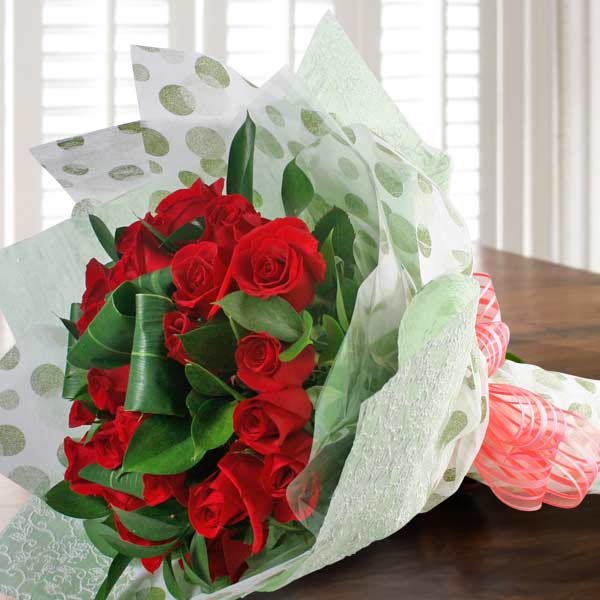 20 Red Roses With Cordyline Foliage Hand Bouquet