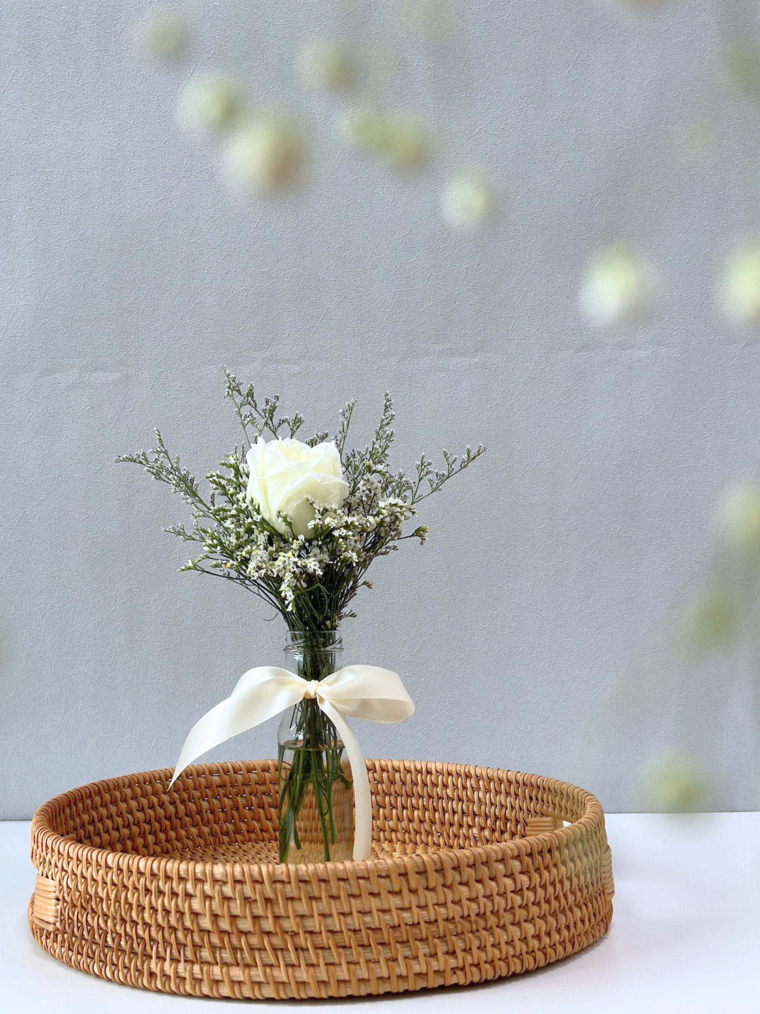 Due to seasonal and natural factors, the colours of some flowers and leaves may vary. Likewise, some preserved bouquets contain hand-painted sola flowers making their design one and only in the entire world. If there are some blooms not available, we may substitute similar or superior blooms to maintain the overall style, making your bouquet uniquely yours.