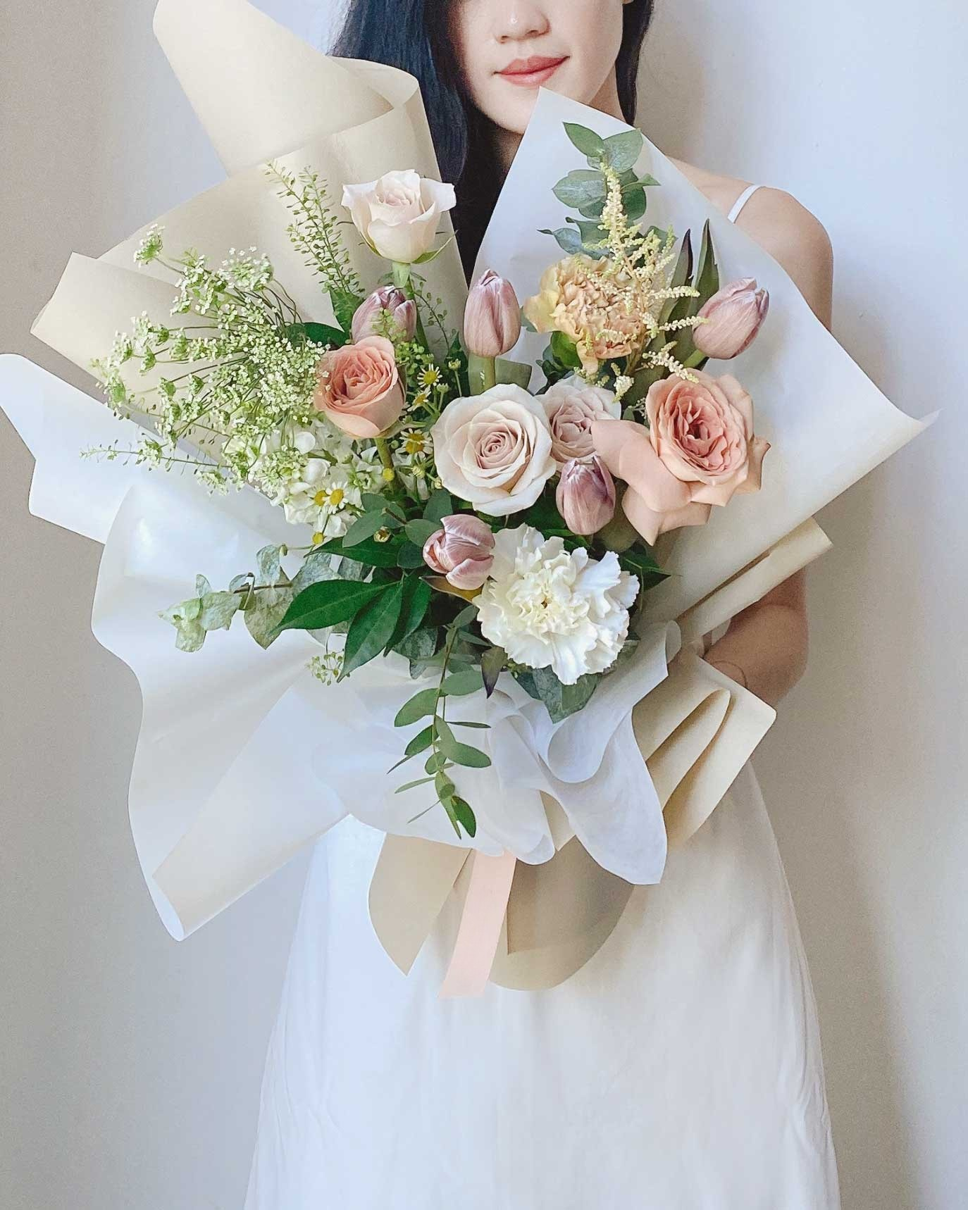 Ngl, photos are taken with our iPhones and by 2 clueless but adorable “interns”. As much as possible, we try our best to just edit only the ugly fine lines and wrinkles on the background of the photos. Lightings and exposures have also been adjusted. So, the colours in our photos might look slightly different from the actual bouquets. But hey, we promise to constantly improve ourselves to serve you better.
