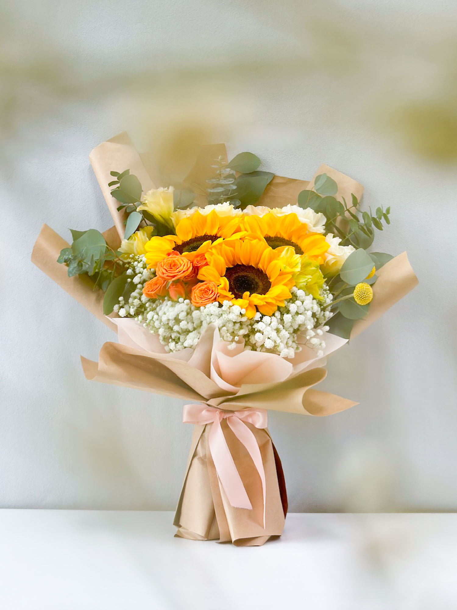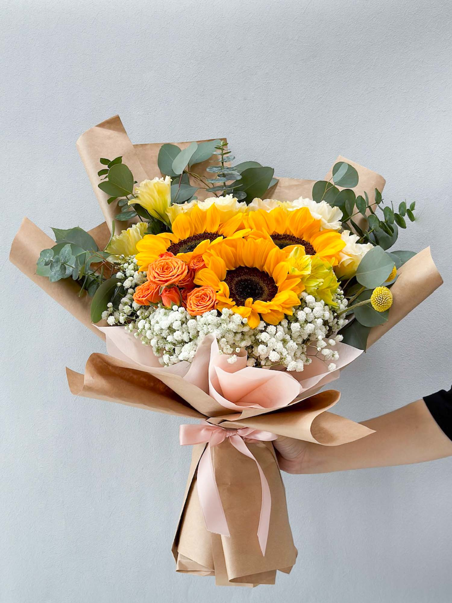 For anyone who could use a burst of cheer, our Somerset Sunshine bouquet is all about brightening their day. With three sunny sunflowers at the heart, this bouquet is like a little ray of Somerset energy, perfect for celebrating small wins, saying thank you, or just bringing a smile. A reminder that sometimes, all we need is a bit of sunshine to keep going—steady lah!